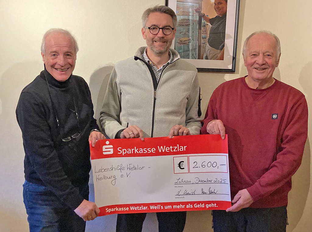 Glückliche Gesichter bei besonderer Spendenübergabe an die Lebenshilfe Wetzlar-Weilburg e. V.: Anlässlich ihres jeweiligen 75. Geburtstages haben Hans Rauber, langjähriges Mitglied des Aufsichtsrates der Lebenshilfe, und Lothar Schmidt, Mitgründer der "Mixed Pickles", insgesamt 2.600 Euro gespendet. Statt Geburtstagsgeschenke hatten die beiden Jubilare ihre Gäste um eine Zuwendung für den guten Zweck gebeten. Vorstandsvorsitzender Thomas Bauer war selbst Gast des 150. Geburtstages und freut sich über die stolze Summe: "Unsere Lebenshilfe freut sich sehr über diese tolle Idee von Hans Rauber und Lothar Schmidt und wir sagen ein herzliches Dankeschön. Das Geld kommt jeweils zur Hälfte dem Wohnhaus Braunfels sowie unserer inklusiven Band "Mixed Pickles" zu Gute."